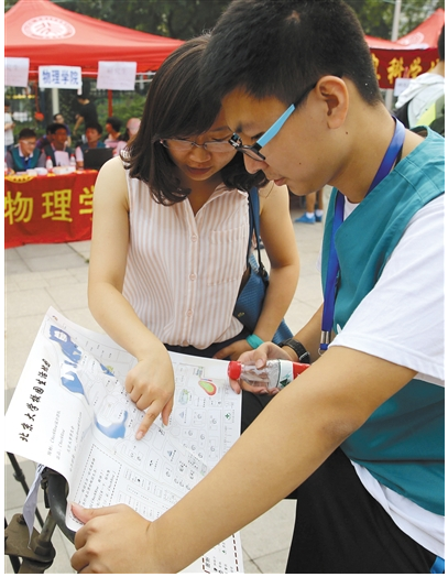 北大招办介绍,该校今年录取的全国各省高考头名、前十名人数,均居全国高校榜首。被录取的各省份头名考生中,40%选择了元培学院、中文、法学、数学、物理、化学等专业,“长期以来扎堆报考经管类专业的现象得到扭转,基础学科受到普遍欢迎。”北大招办负责人说。