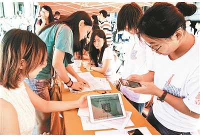报到时,新生拿出手机展示这张二维码,工作人员扫描后,在系统里直接调出新生已经注册好的个人信息,完成身份确认。仅需几秒钟,新生就完成了报到。一位学院负责老师说,以往新生报到时,要排队填写姓名、性别、生源所在地等内容,并且核验录取通知书。现在有了电子护照,相当于携带了证件照及所有申请单,新生报到时间从几分钟缩短到了几秒钟,效率大大提高。