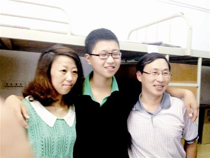 图为:汪逸凡和父母在寝室里合影