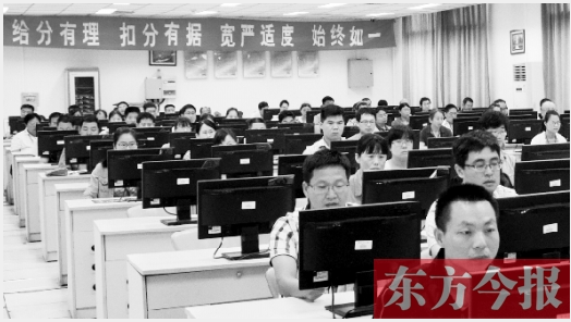 “我们会以每位评卷员的标准差减去整体的标准差,如果前者是后者的1.6倍,系统就会自动提醒。”省质检组工作人员介绍,被提醒的评卷员就会被调到难度较小的客观题组,调相对经验丰富的评卷员来评主观题。