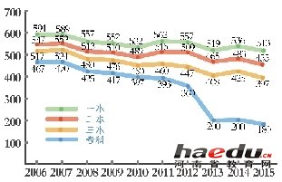 专科线首次降至200分以下