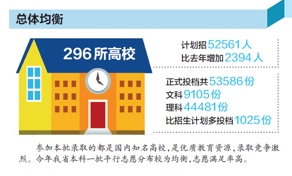 今年我省本科一批录取工作今天投放定向、预科档案,本批录取工作将于7月22日结束。