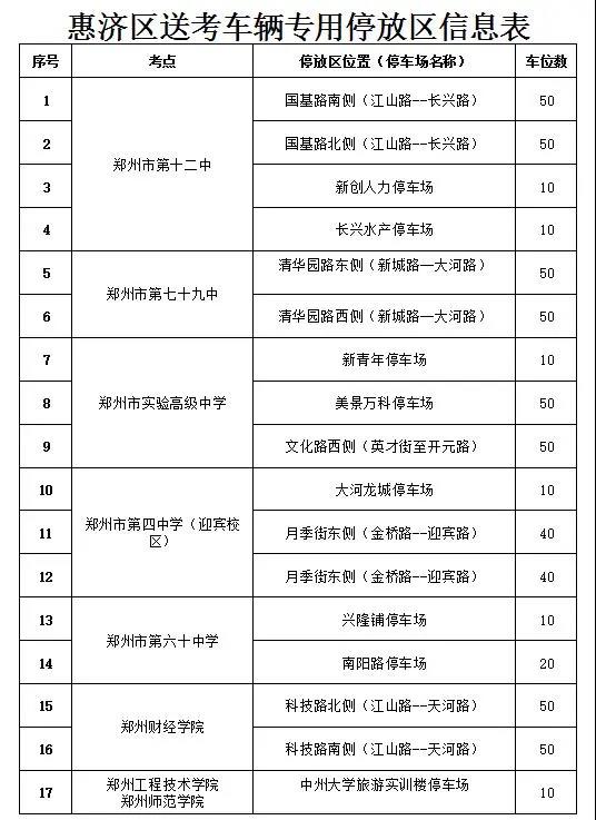 高考期间,郑州设置送考车辆专用停放区