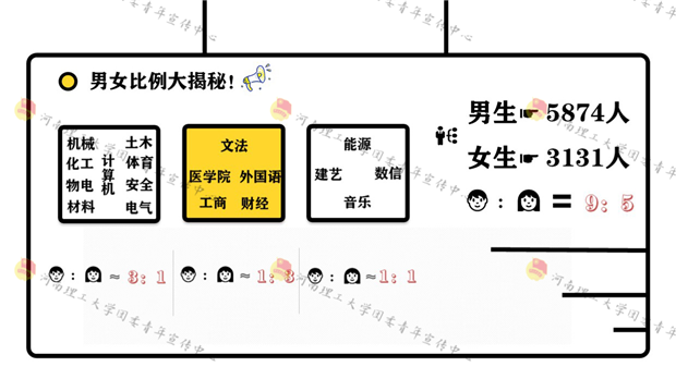 看了这么多男女比例,小萌新们有什么感想呢?有的学院“万花从中一点绿”,有的学院“男生一枝独秀”。郑大这么大,学生活动这么多,小萌新们就不必为本院的男女比例忧愁啦~