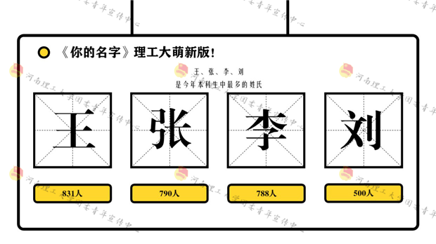 王、张、李、刘、杨位列20级新生姓氏人数榜top5,你的姓氏是什么呢?快来骄傲地告诉小编!