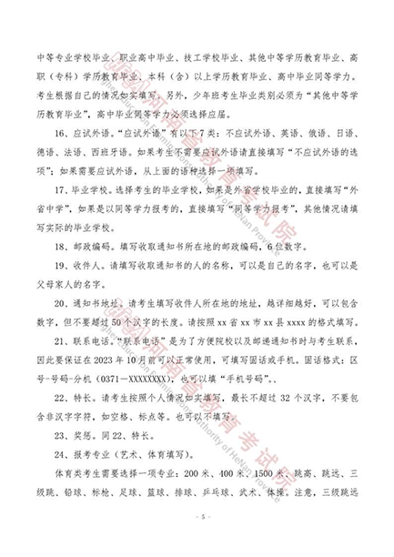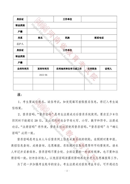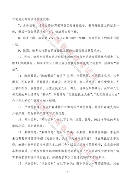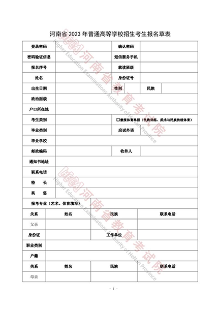 河南省2023年普通高等学校招生考生报名草表