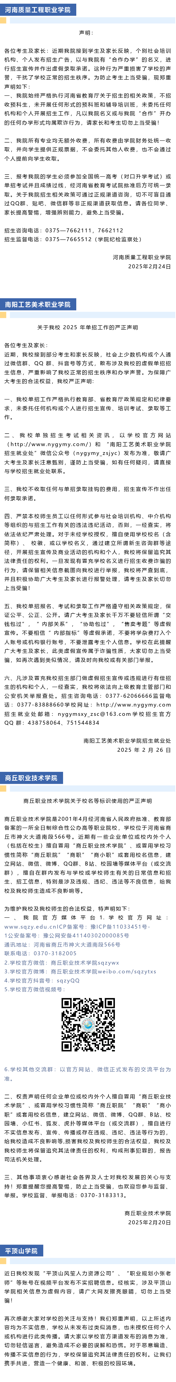 今年,省教育厅批准105所省内高校开展高职单招工作,招生对象为已通过河南省2025年普通高校招生统一考试报名的考生,以及已通过河南省2025年普通高校对口招收中等职业学校毕业生考试报名的考生。