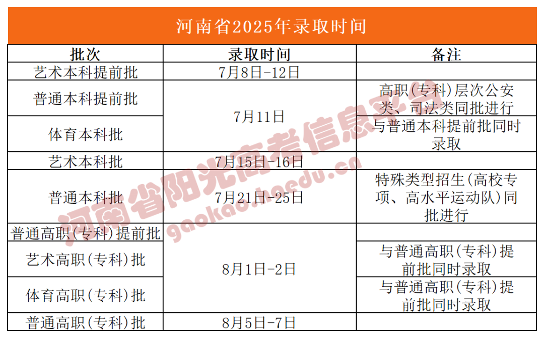 2025年河南高招普通本科批录取工作于今日(7月21日)正式开始,特殊类型招生(高校专项计划、高水平运动队)同批进行,各批次录取工作开始后,省教育考试院根据录取工作进度更新考生电子档案状态,考生可自行查询或耐心等待!