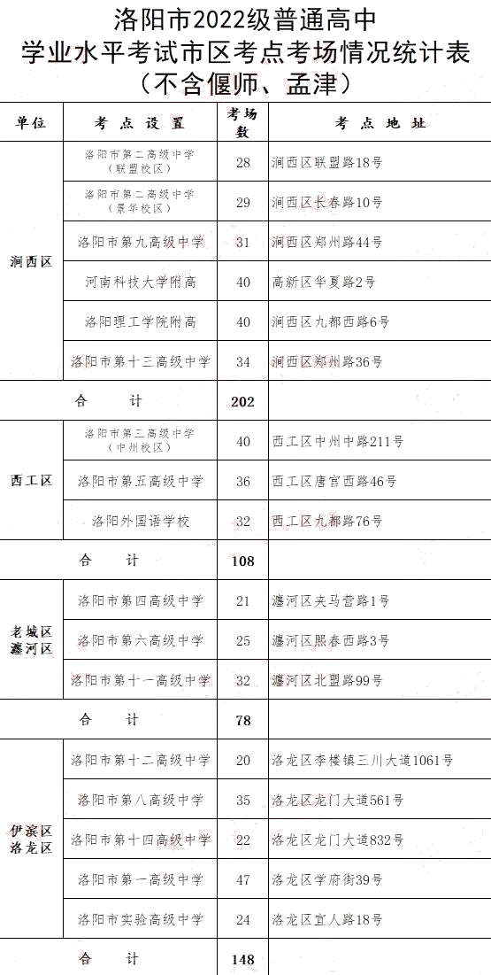 洛阳市高中生学业水平合格性考试考点公布