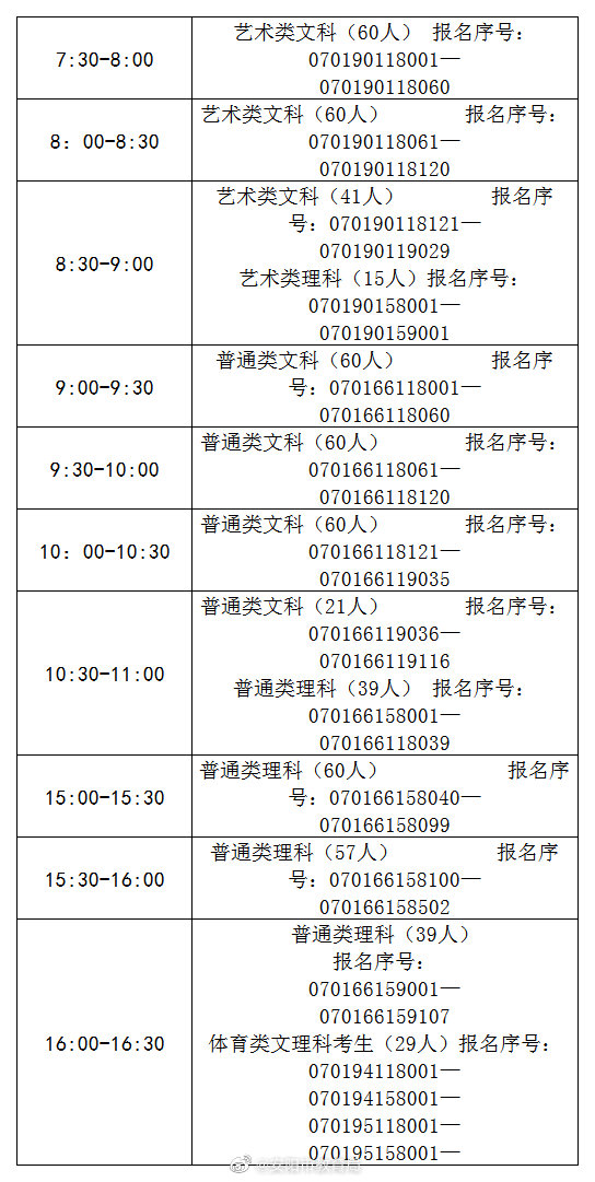 2、考生要严格按照每个时间段内报名序号的安排,提前10分钟到达体检地点。