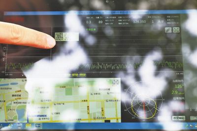记者看到,在平板电脑的操作界面上,有一个类似于“心电图”走势的“波纹显示器”及测试地附近的地图。据白宇军介绍,放飞地附近一旦出现可疑信号,“心电图”便会产生相应的波动,且通过定位,系统可以迅速、准确地为工作人员提供发射源所在的参考位置。
