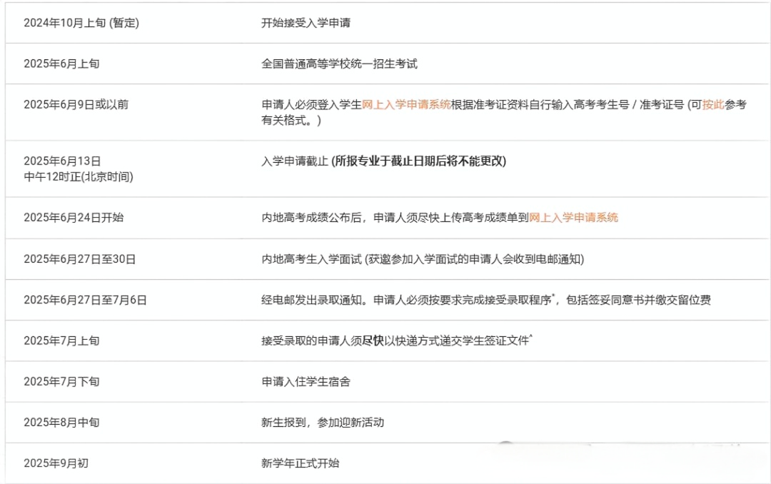 * 不同省市的投档日期及安排各有不同,相关具体流程将依据教育部宣布之高考及录取政策作出及时调整。大学亦会根据实际录取情况而提前结束录取工作。