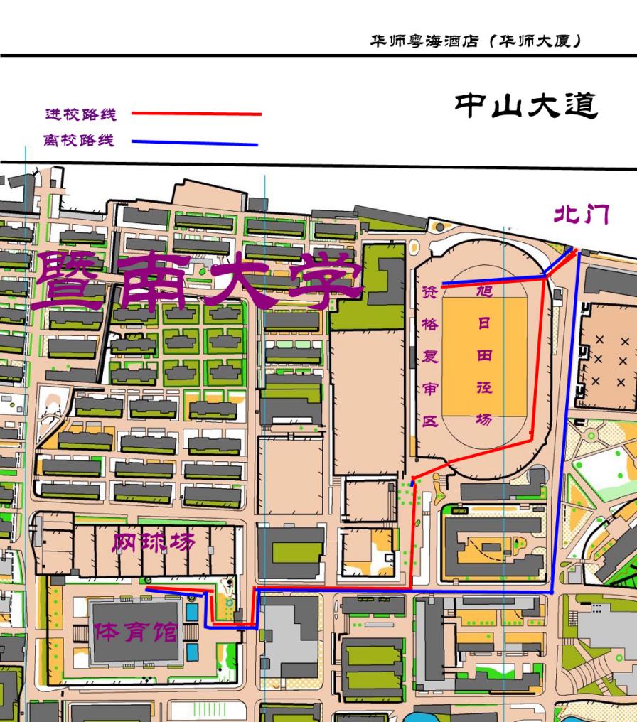 2.进校路线:考生统一从暨南大学北门(广州市中山大道西华师大厦对面)进入。因疫情防控需要,其他校门不对考生开放。