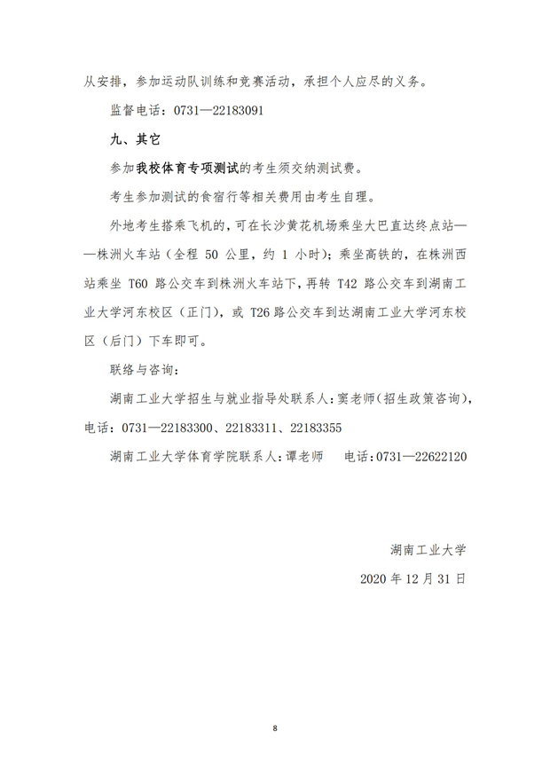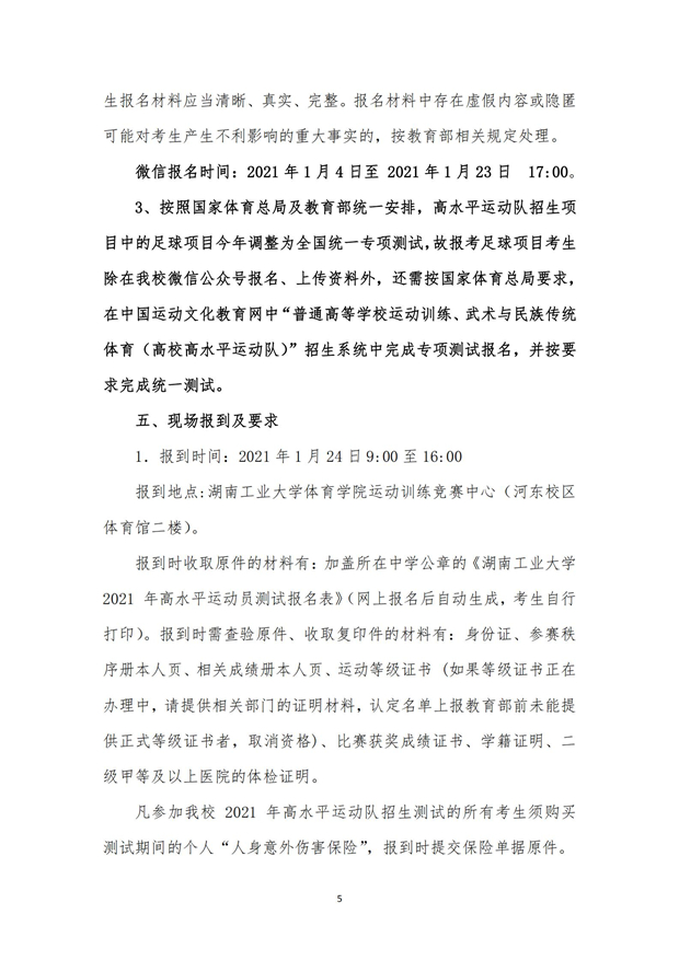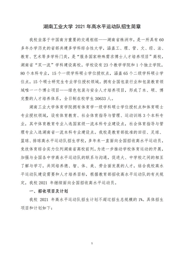 湖南工业大学2021年高水平运动队招生简章