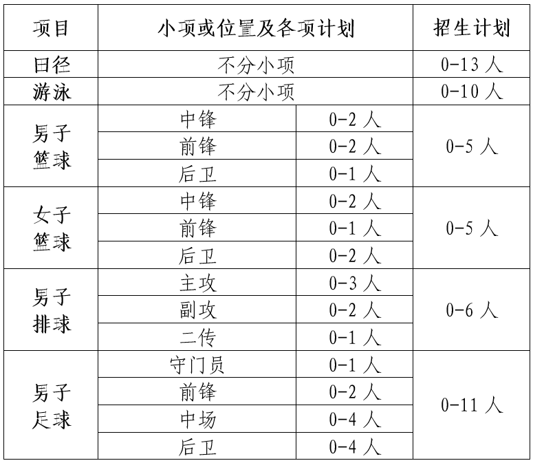 1.男篮、女篮不招收曾是或目前仍属国家、省、自治区、直辖市、特别行政区运动队正式在编运动员;不招收在篮球运动管理中心注册及曾参加过全国青年联赛、俱乐部青年联赛、NBL联赛、CBA联赛、WCBA联赛的运动员。