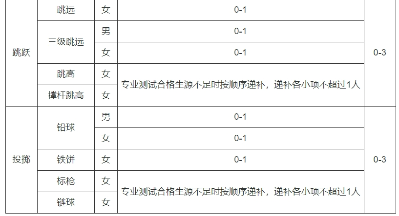(二)高考前,我校根据全国体育专项测试统考成绩分布情况确定各项目专业合格成绩要求,结合报名资格审核结果、体育单招录取结果和招生计划确定专业考试合格名单,已被体育单招录取的考生不再具有专业考试合格名单入选资格。