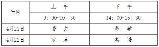 1.文化考试科目:语文、数学、政治、英语