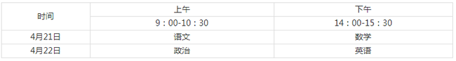 文化考试由教育部考试中心组织命题;各省级招生考试机构负责组织实施。考试科目包括语文、数学、政治、英语,每科满分150分,总分600分。