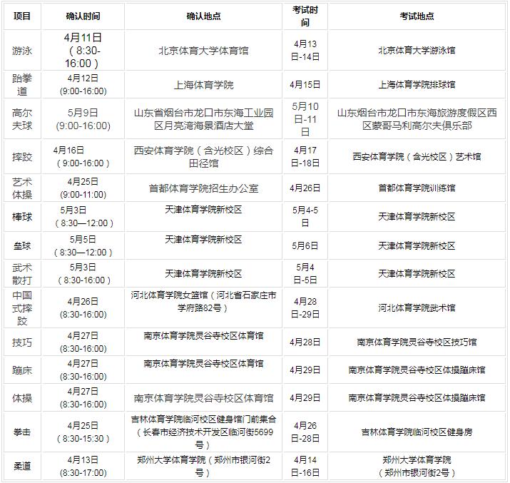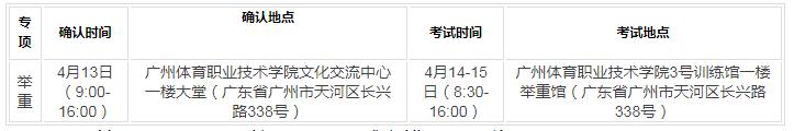 凡报考华南、华中地区(包括广东、广西、海南,湖北、湖南、河南六省)所属25所单招院校乒乓球、羽毛球、网球、武术套路四个项目的考生须来我校参加专项考试,具体考试安排如下表(年份为2018年):