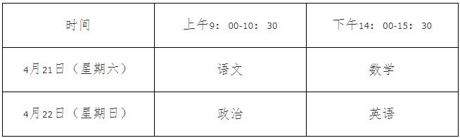 考生均须参加生源所在地省级招生考试机构组织的文化考试,考生4月15日12:00后可登录中国运动文化教育网网站及APP中的体育单招考试管理系统打印文化考试准考证,各科目考试时间为: