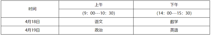 ⒉文化考试时间: