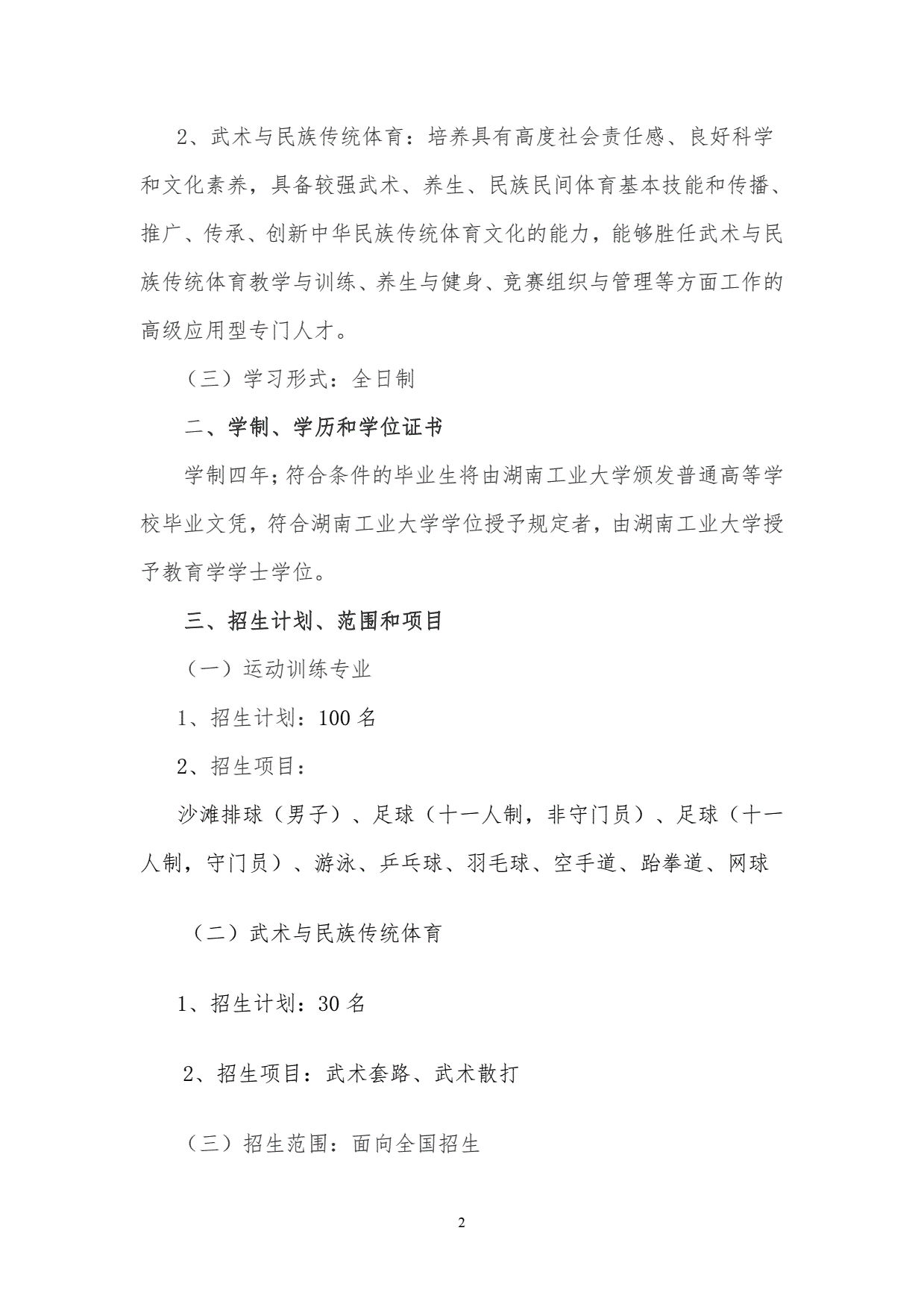 湖南工业大学2022年运动训练、武术与民族传统体育专业招生简章