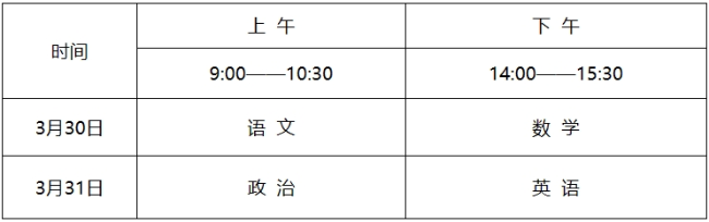 (一)文化考试:由教育部教育考试院组织命题和印制试卷,省级招生考试机构负责试卷(含答题卡)接收和组织本省生源的文化考试,考试科目为语文、数学、政治、英语四科,每科满分150分,四科满分600分,使用国家通用语言文字作答。所有考生必须参加普通高考报名所在地省级招生考试机构组织的文化考试。考生于2024年3月23日12:00后登录“体育单招系统”打印文化考试准考证,依据准考证上的考点信息于3月30、31日参加文化考试。