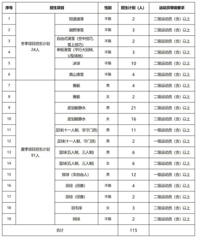 2024年拟定招生115人,最终计划数以国家体育总局审批公布为准。