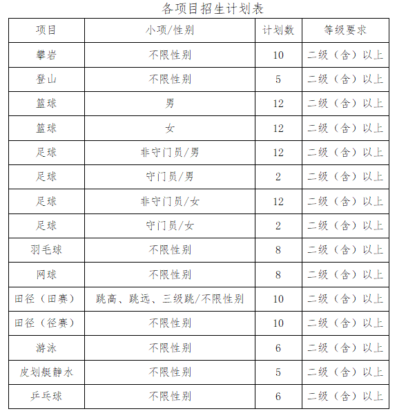 (二)具备我校招生项目的二级(含)以上运动员技术等级称号。考生运动员技术等级以“国家体育总局运动员技术等级系统”数据信息为准。考生本人的运动员技术等级项目应与报考的招生项目一致,考生如具备所报考项目的多个运动员技术等级证书,报名时需填报所有符合报名要求的运动员技术等级证书。(篮球项目考生使用篮球或三人篮球运动员技术等级证书均可报名,按照篮球项目考试方法与评分标准参加篮球专项考试)。