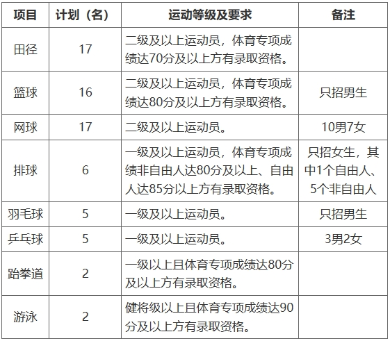 2.体育专项成绩不得低于我校分项目所列最低要求。