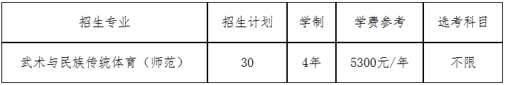 备注:1.武术套路18名,散打12名。招生计划、招生批次等以当地招生主管部门公布的数据为准。