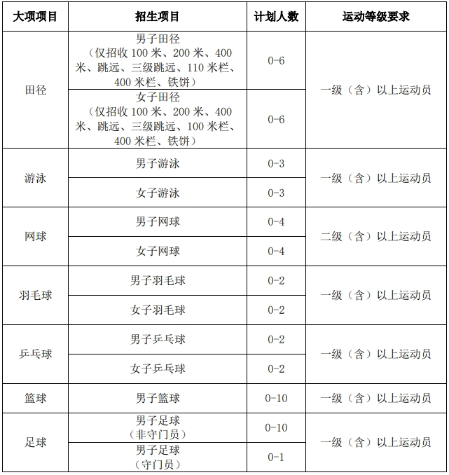 2.具备与我校招生项目要求相对应的运动员技术等级资格(等级证书审批日期为2014年1月1日至2024年3月10日),运动员技术等级以“国家体育总局运动员技术等级系统”公示的数据信息为准;