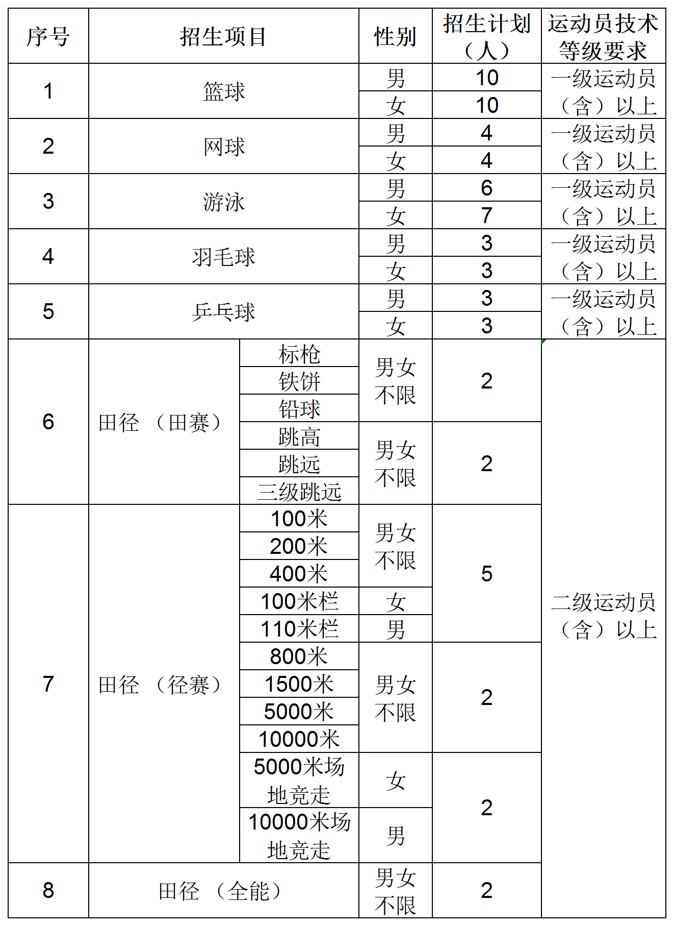 (二)具备与我校招生项目对应的运动员技术等级称号。运动员技术等级证书审批日期为2014年1月1日至2024年3月10日。考生运动员技术等级以“国家体育总局运动员技术等级系统”公示的数据信息为准。