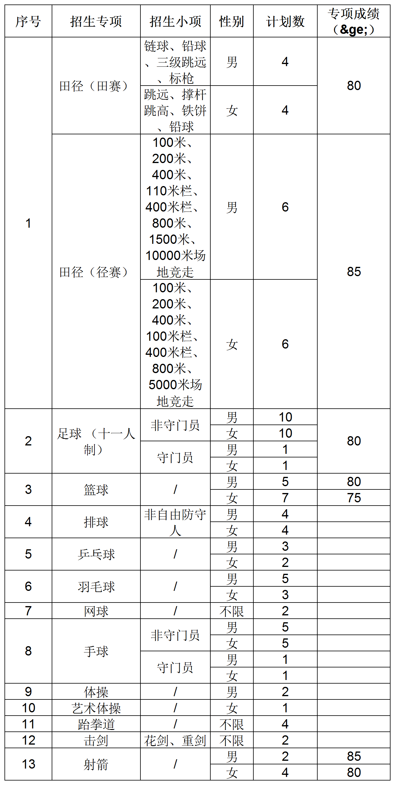 经教育部、国家体育总局批准,2024年我校运动训练专业继续面向全国招生,根据《2024年普通高等学校运动训练、武术与民族传统体育专业招生管理办法》(体科字〔2023〕188号)及其操作细则的有关要求和规定,现将招生有关事项公布如下: