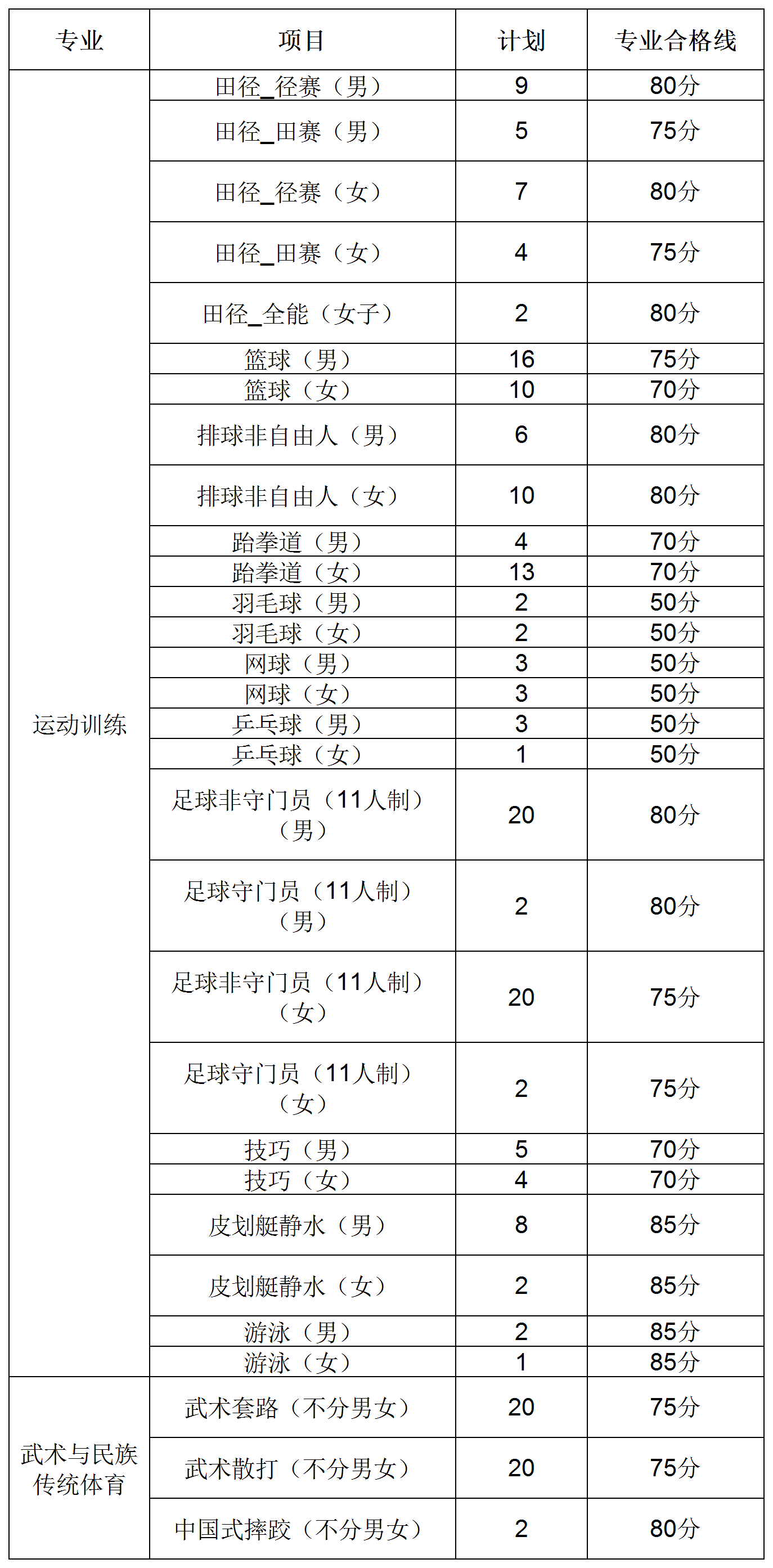 夏季项目(含武术与民族传统体育专业项目,下同):