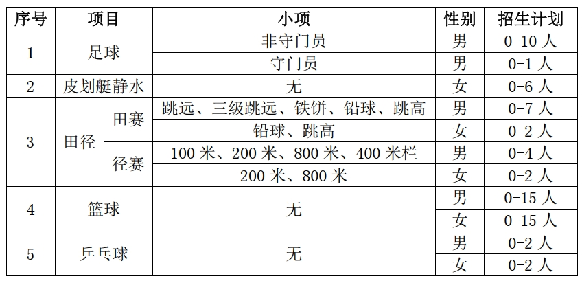 2.录取为运动训练专业的学生进校后不能调整到其他专业。