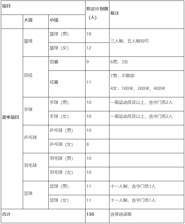 注:以上计划为拟定计划(含保送录取运动员),各项目招生计划视生源情况根据本招生简章录取原则第五条可在项目间调整,最终以实际录取人数为准。