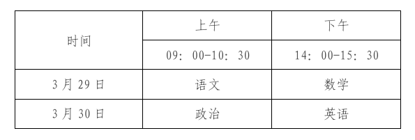 1.所有考生必须参加普通高考报名所在地省级招生考试机构组织的文化考试。文化考试科目为语文、数学、政治、英语四科,每科满分为150分,四科满分为600分,使用国家通用语言文字作答。