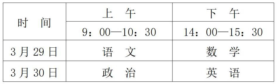 (1)文化考试科目为语文、数学、政治、英语四科,每科满分为150分,四科满分为600分,使用国家通用语言文字作答。