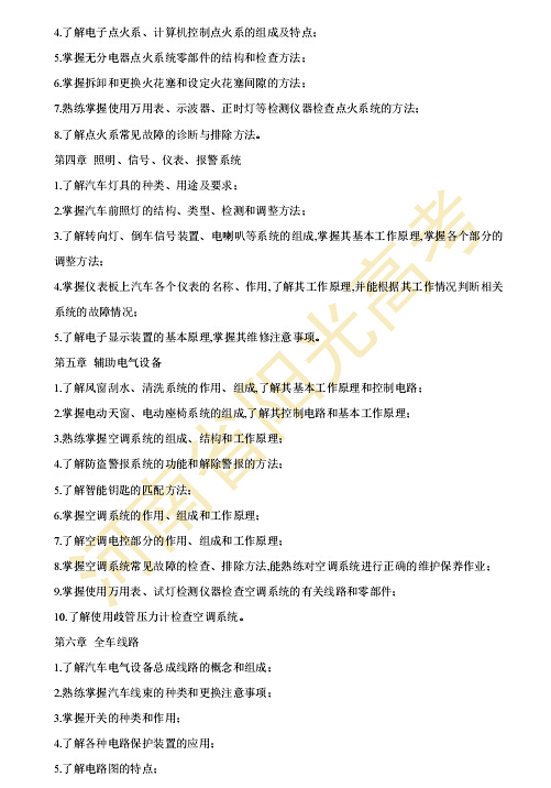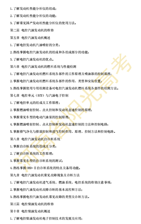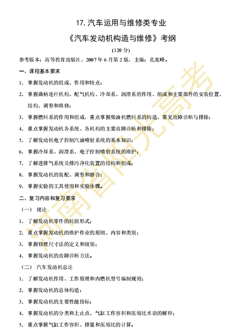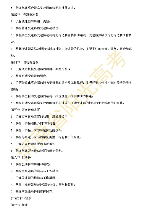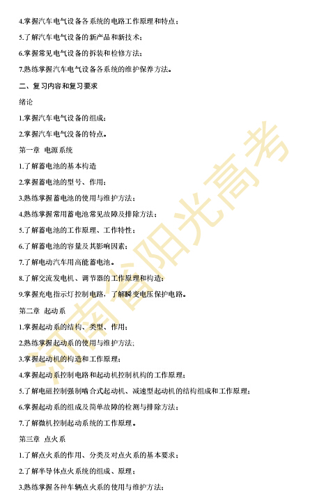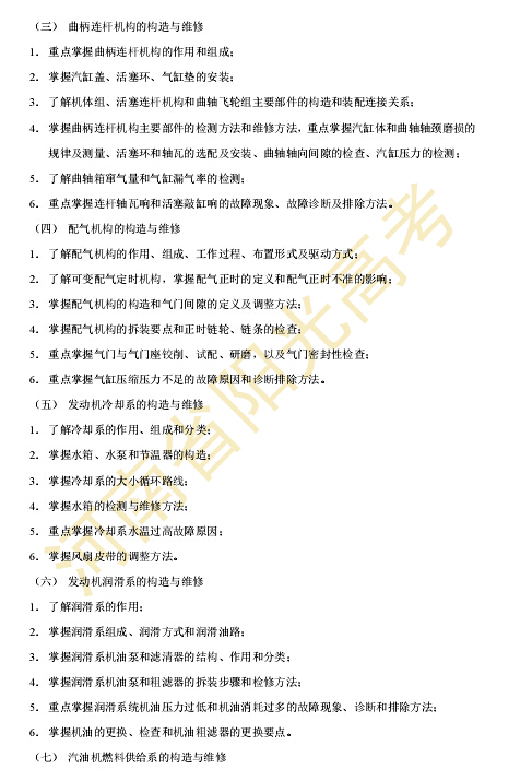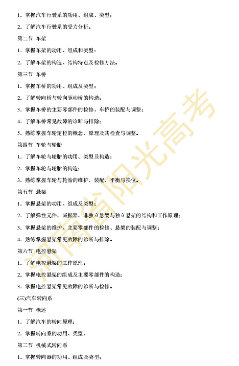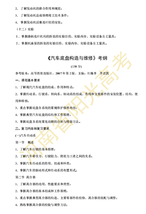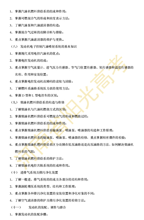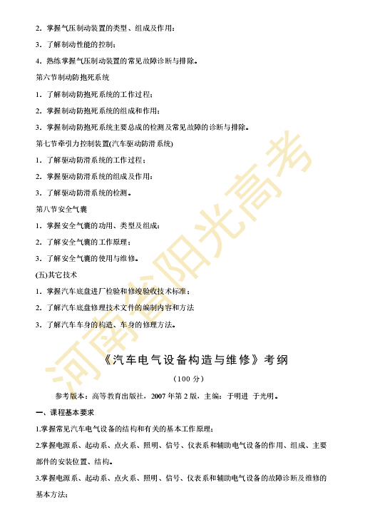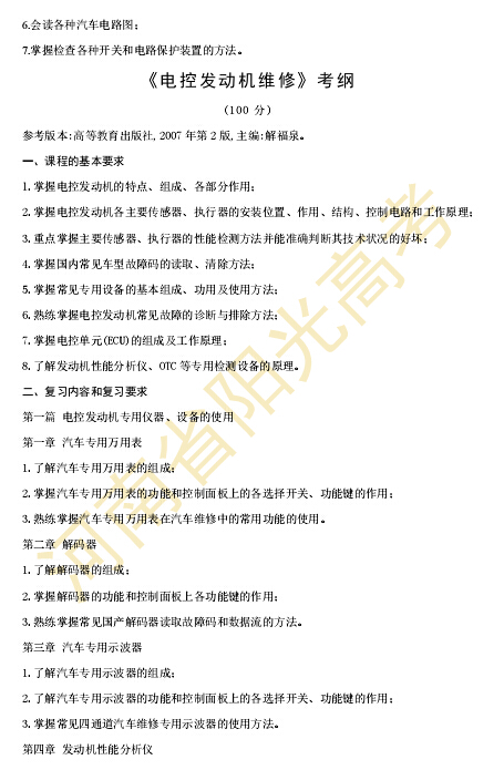 河南省2015年对口升学汽车运用与维修类专业考纲