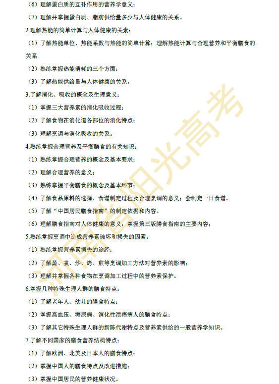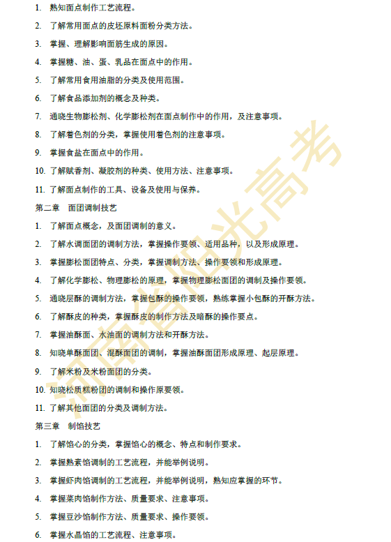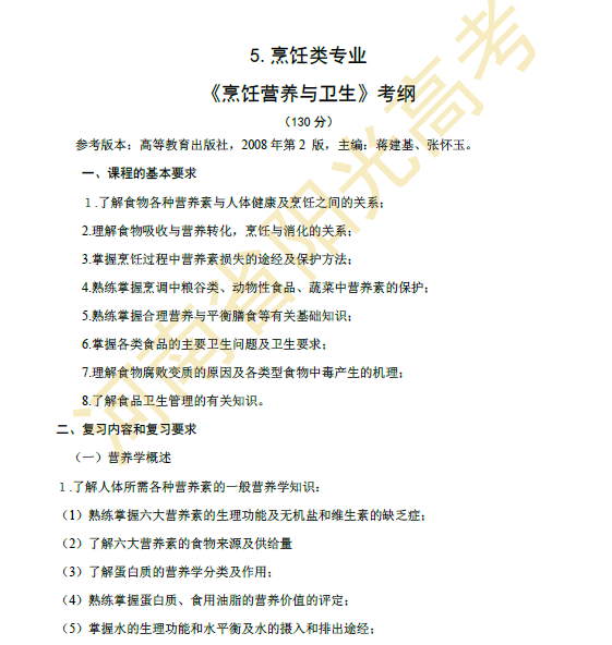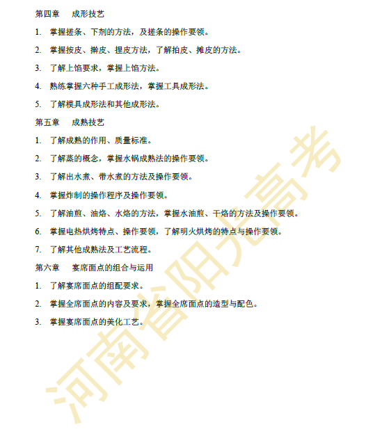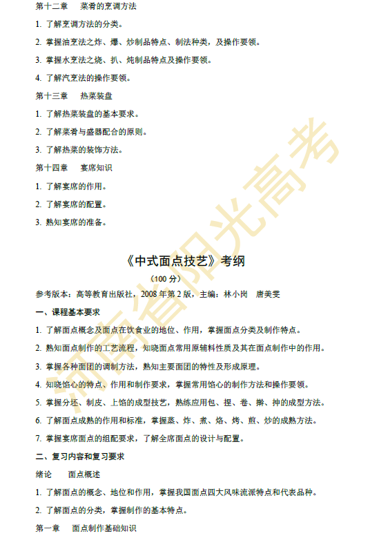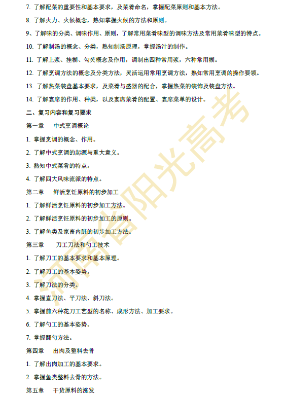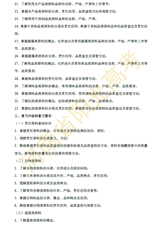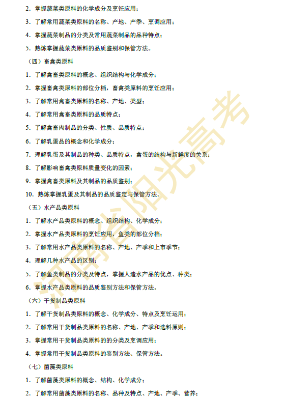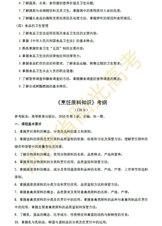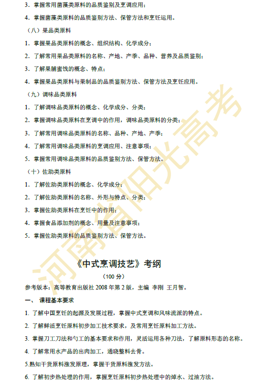 河南省2015年对口升学烹饪类专业考纲
