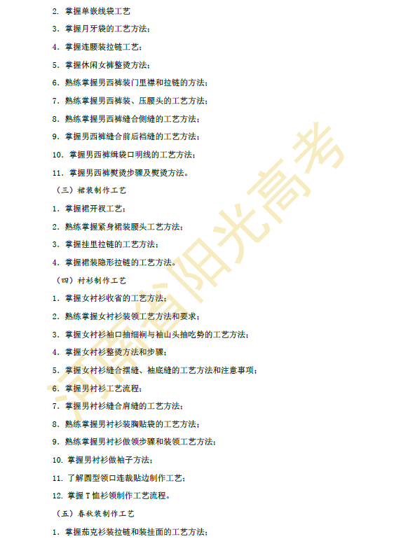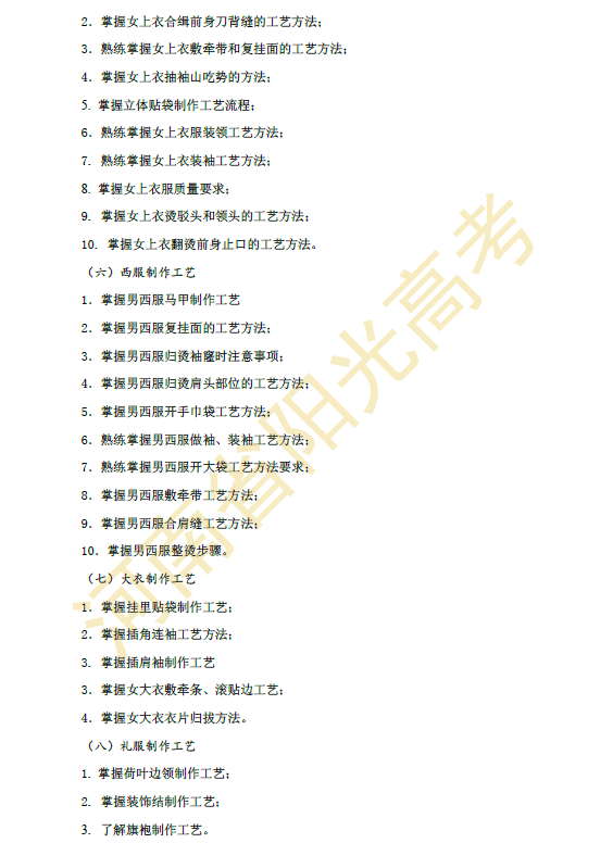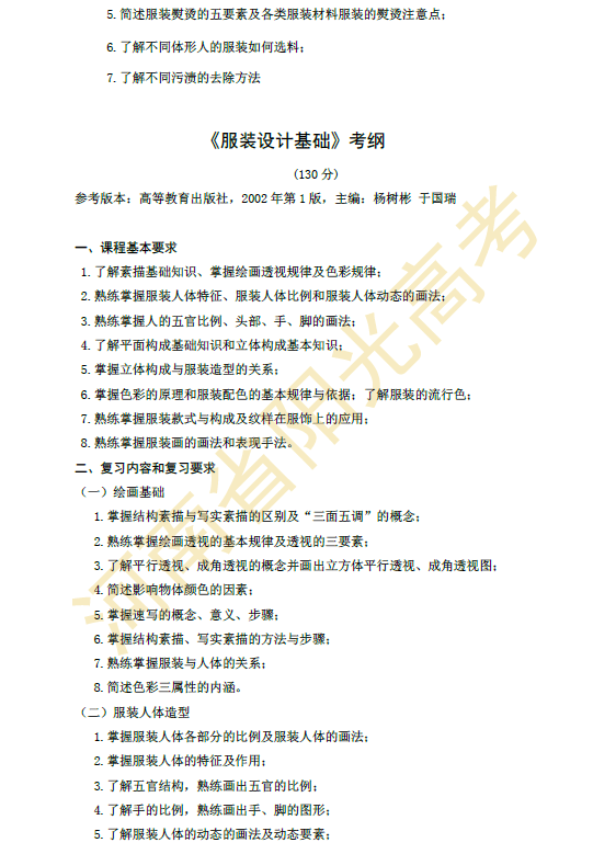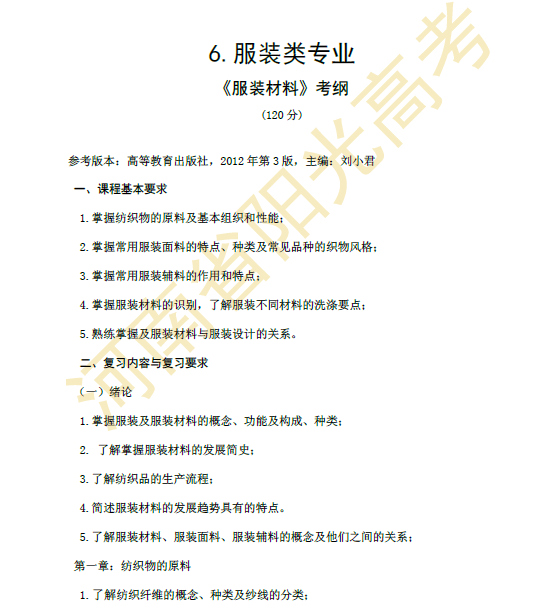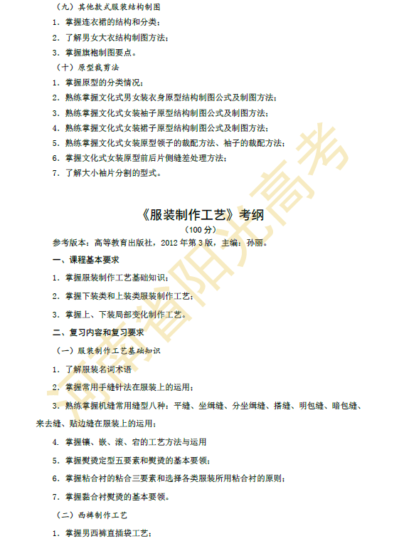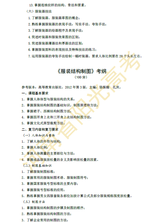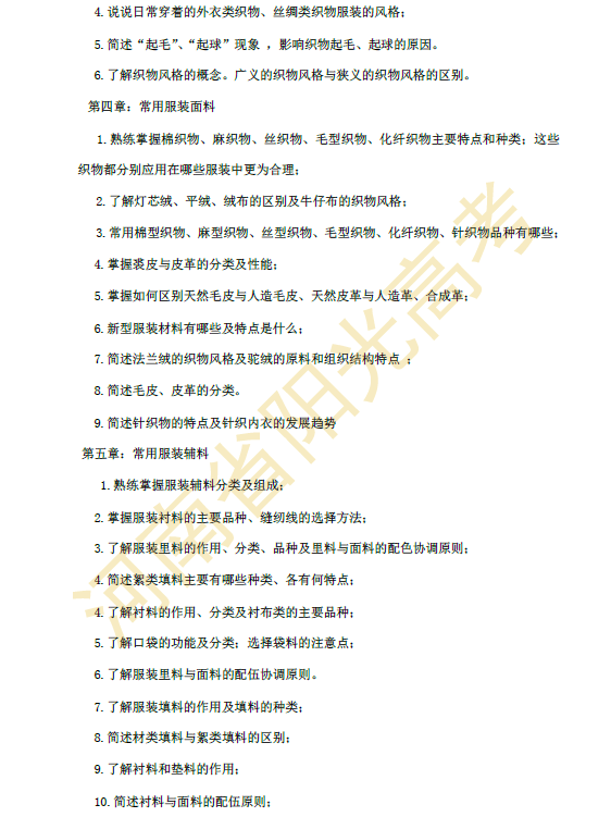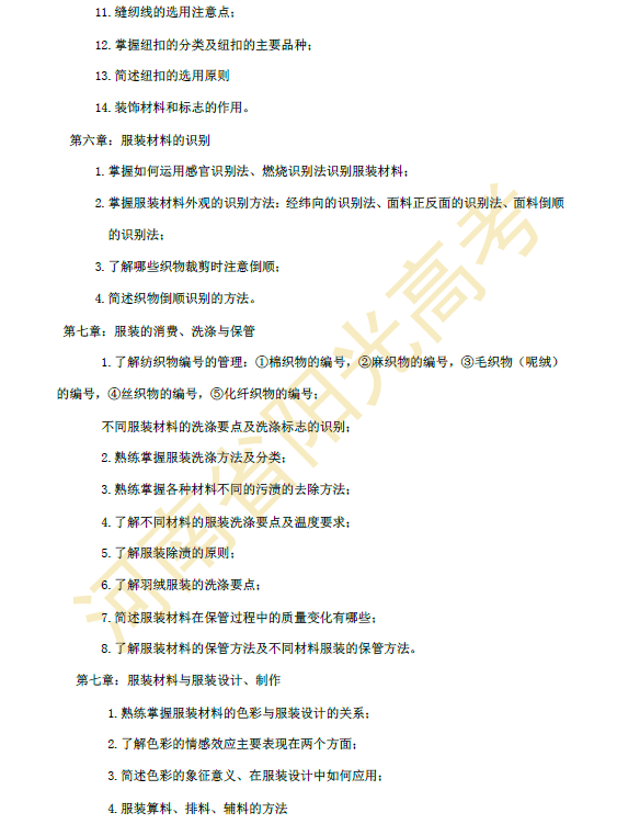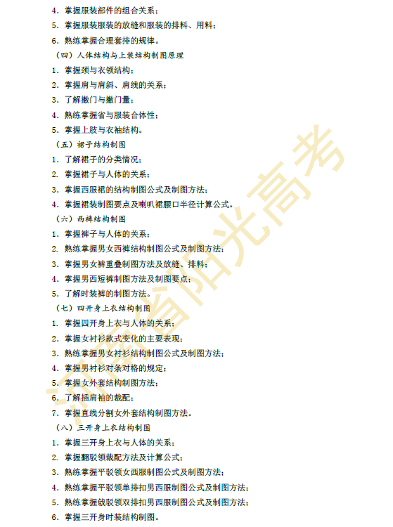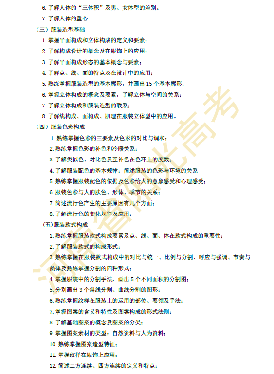 河南省2015年对口升学服装类专业考纲