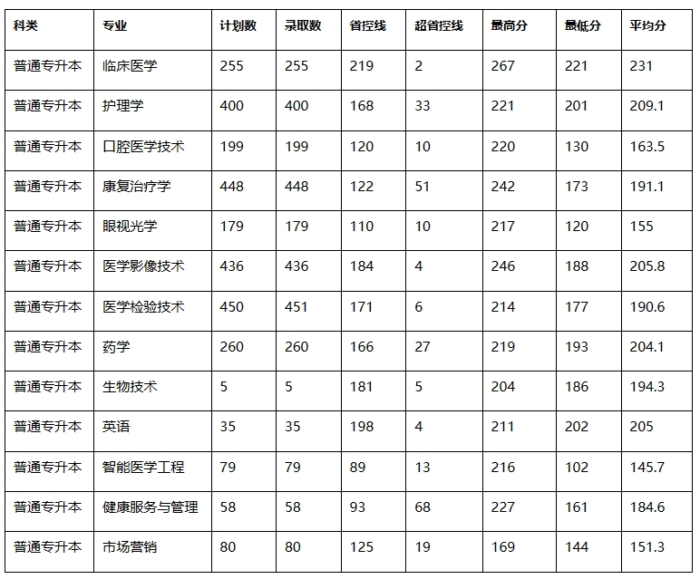 2024年新乡医学院三全学院专升本录取分数线