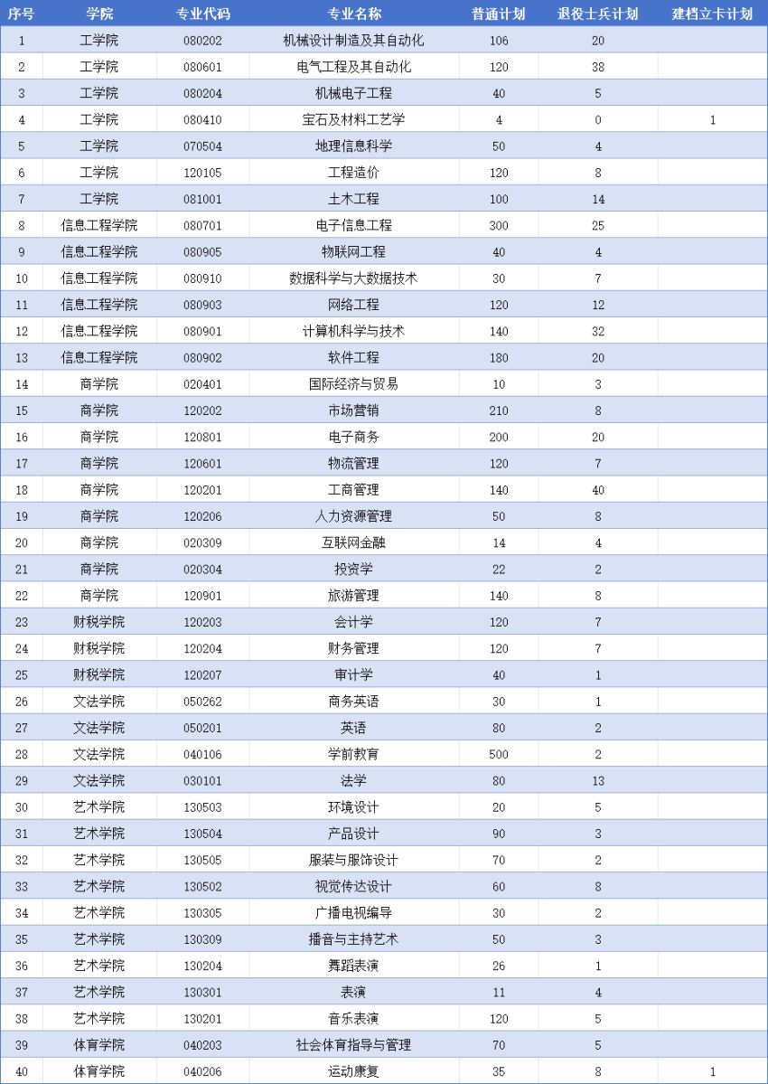 郑州工商学院2024年专升本招生计划