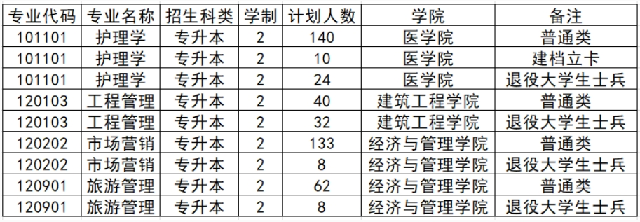 2024年黄淮学院专升本招生计划