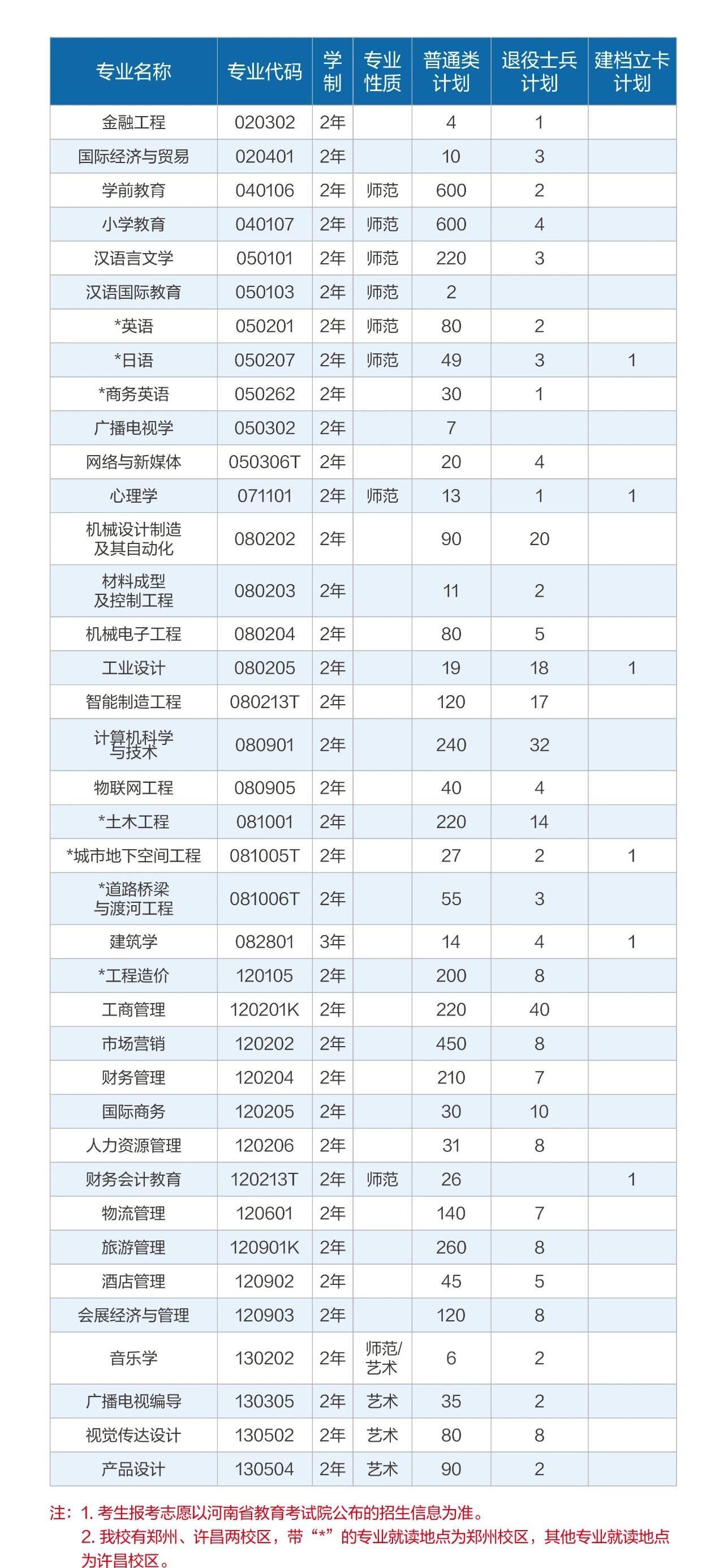 2024年中原科技学院专升本招生计划