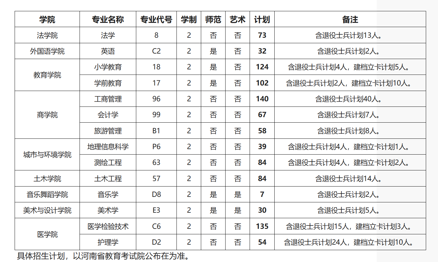 许昌学院2024年专升本招生计划