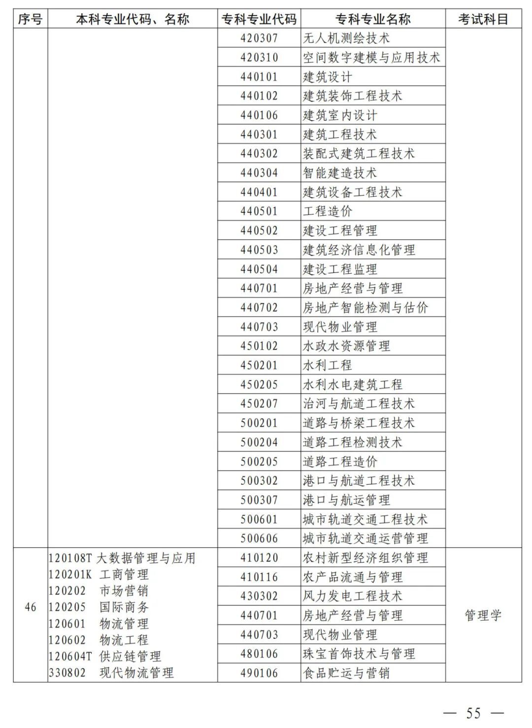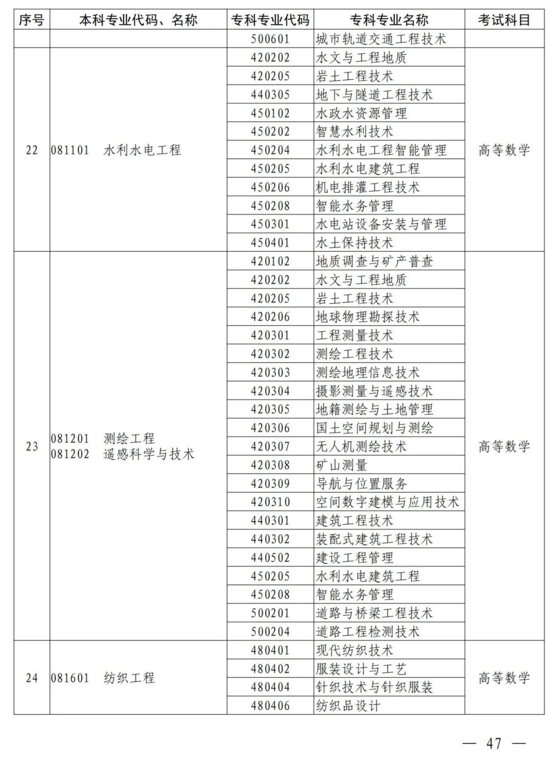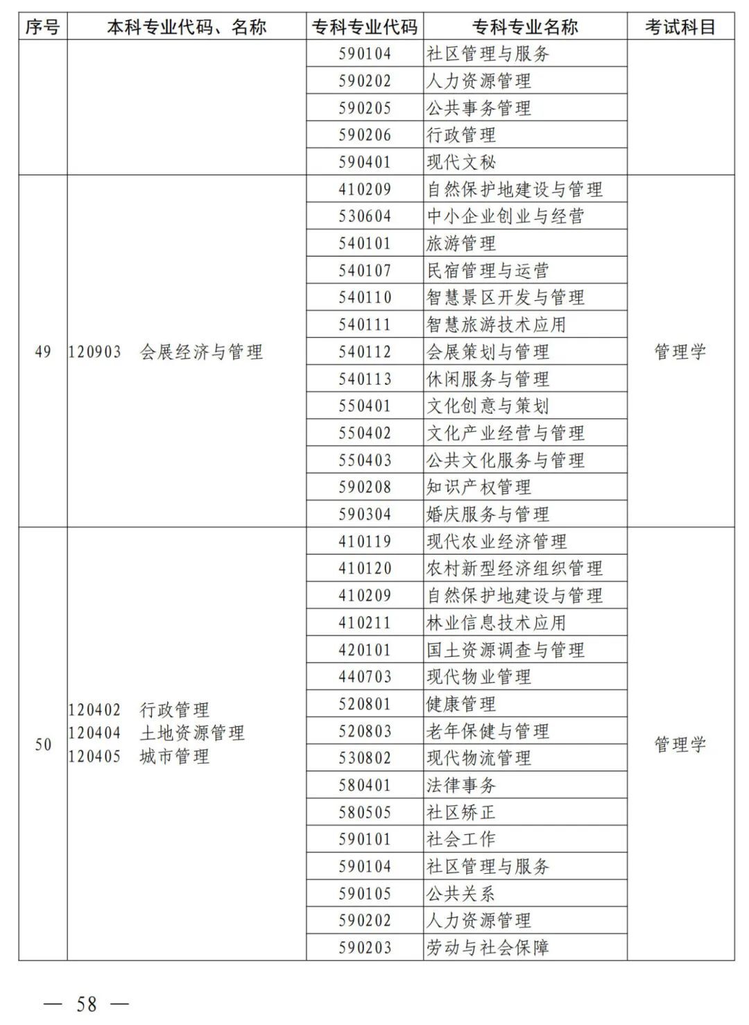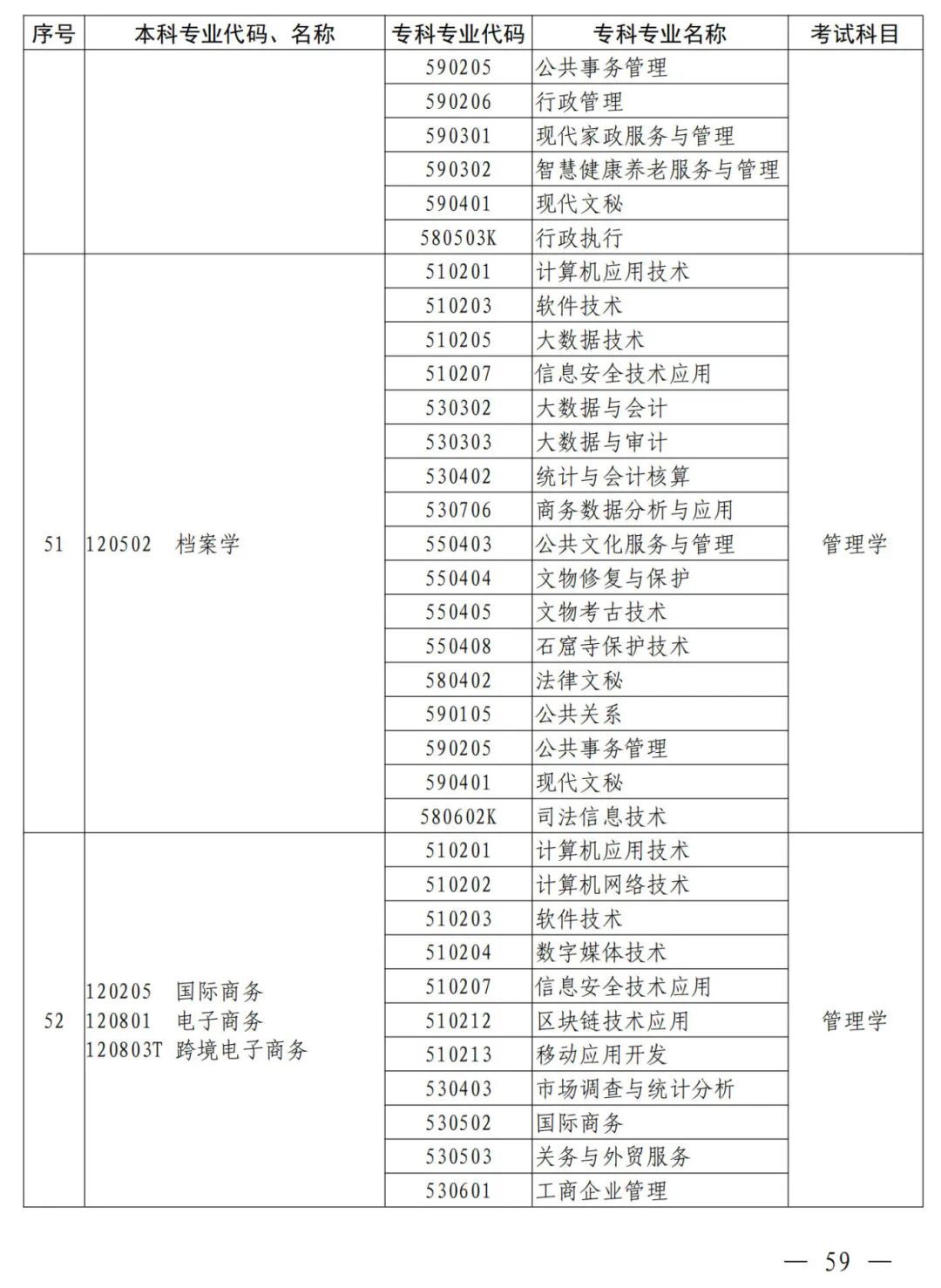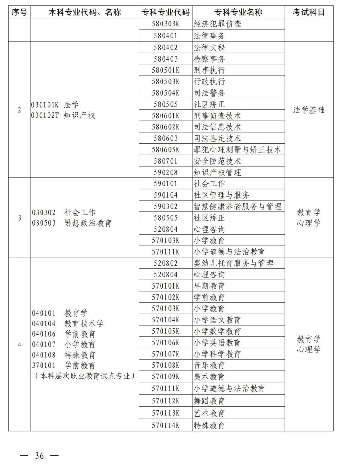 2025年河南省普通高校专升本考试招生专业对照及考试科目一览表