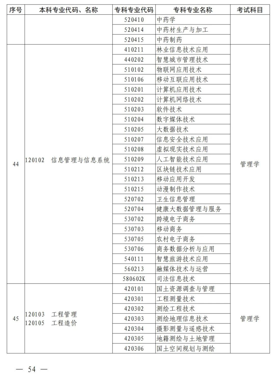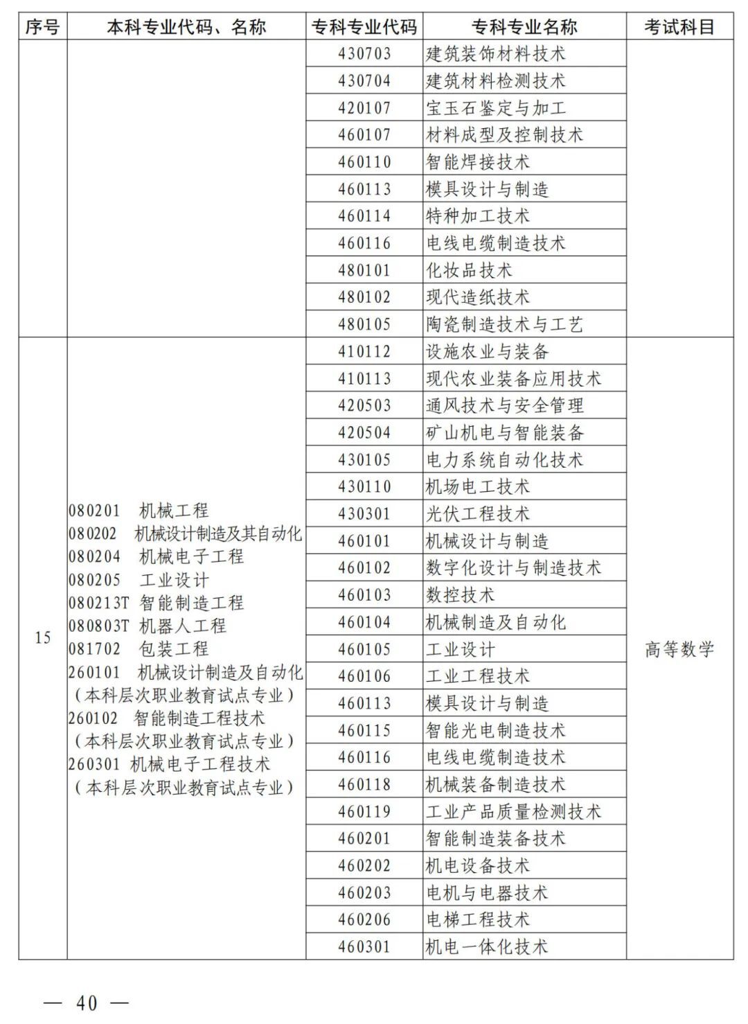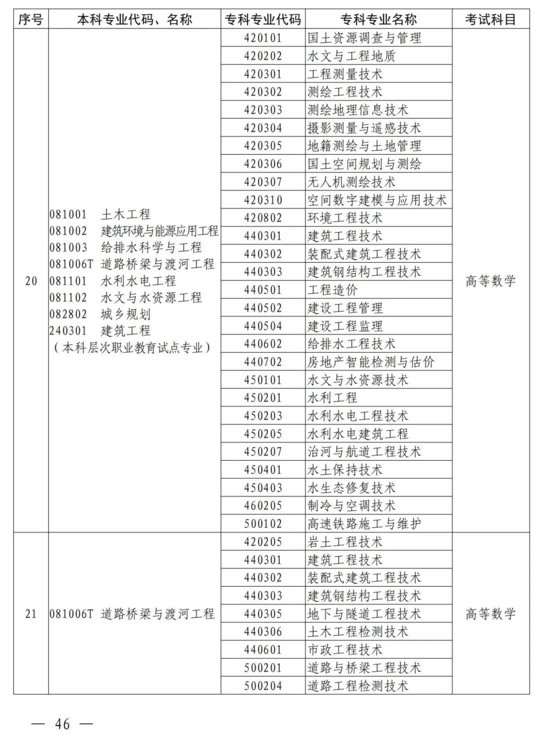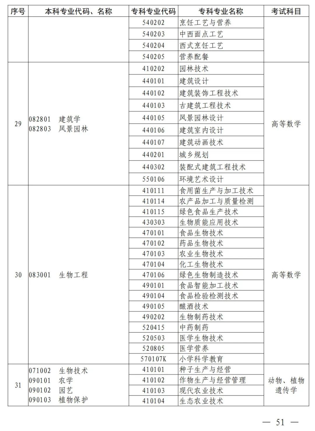2025年河南省普通高校专升本考试招生专业对照及考试科目一览表