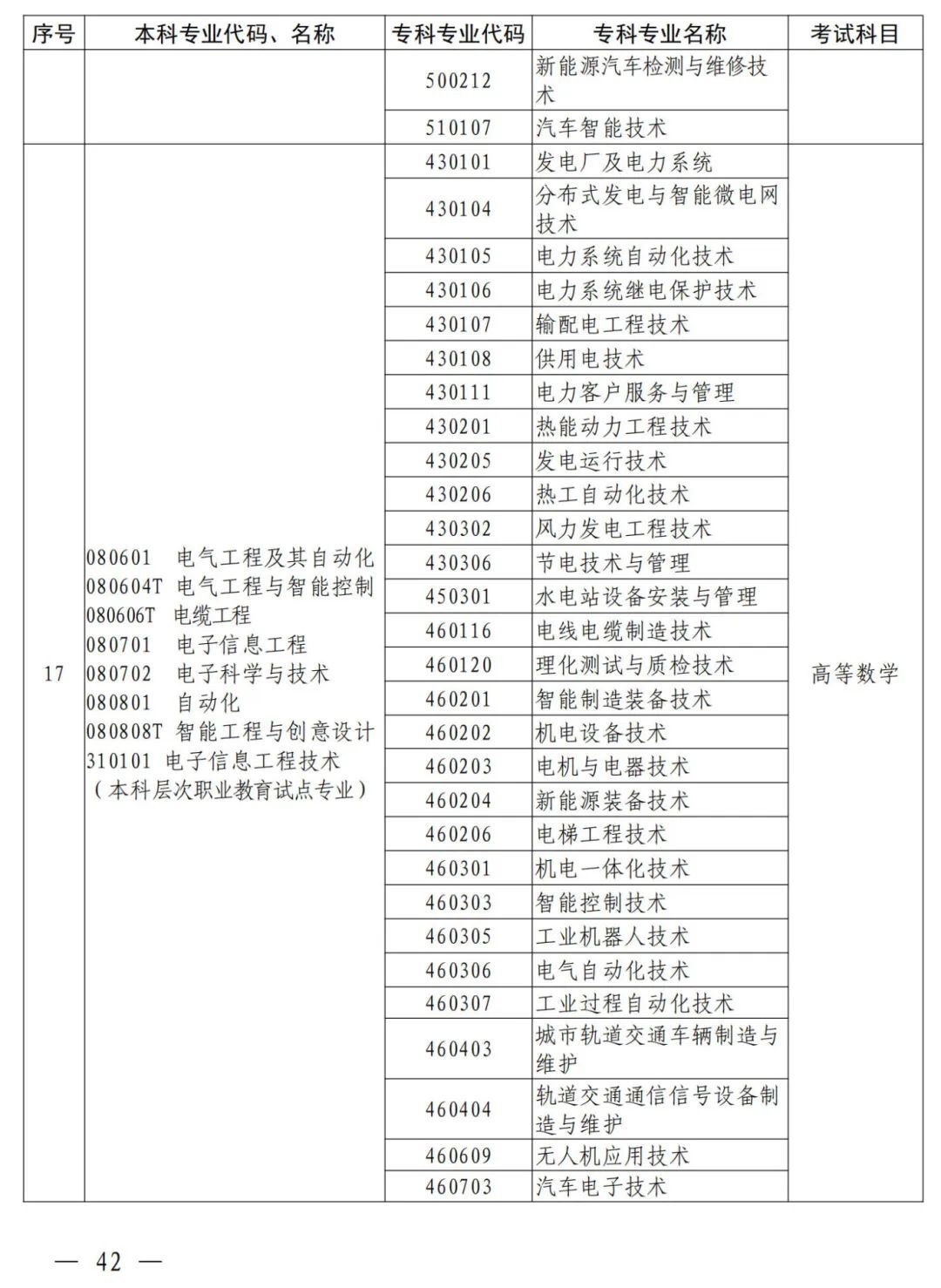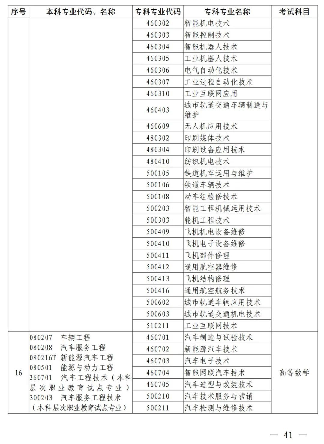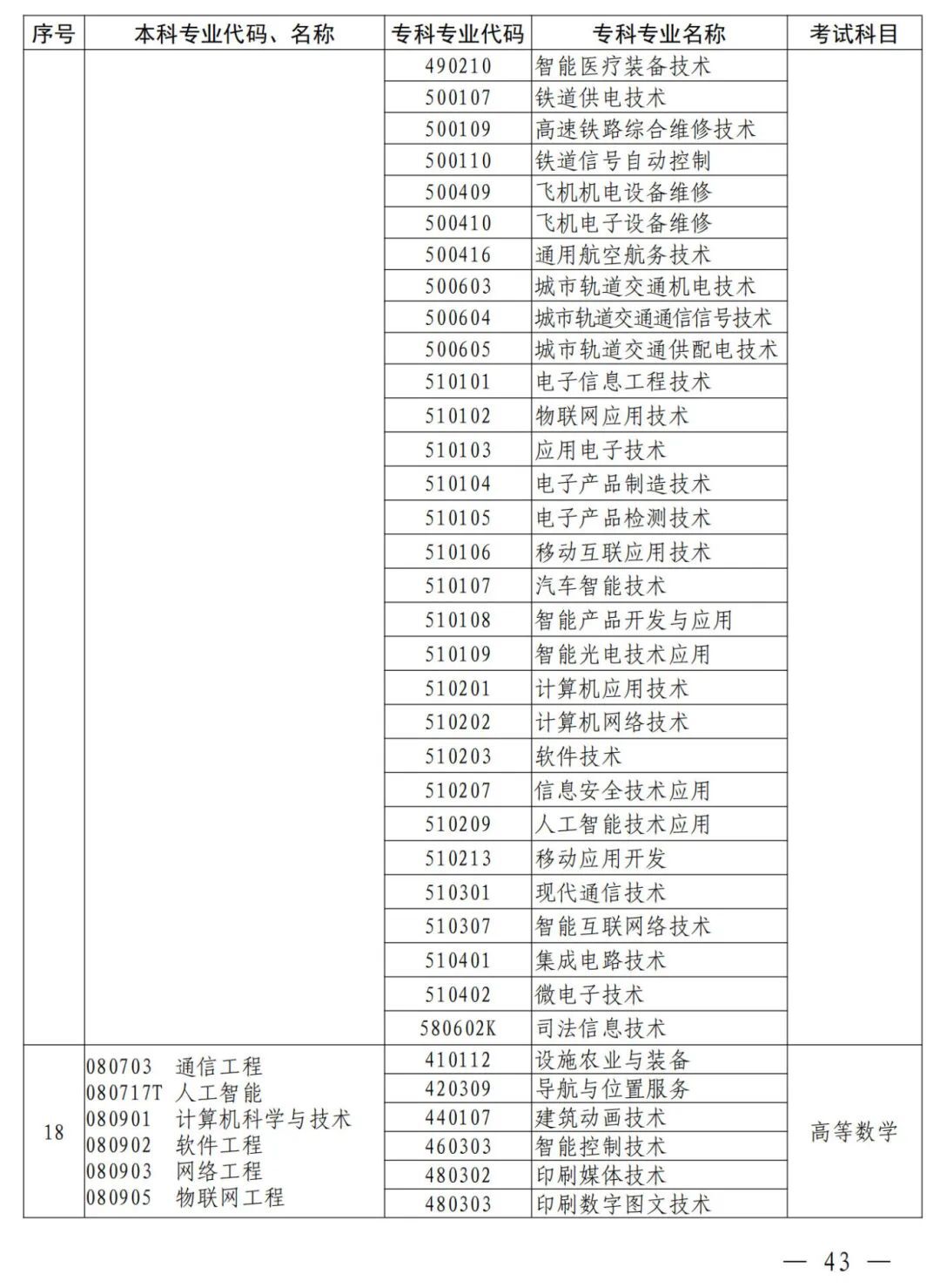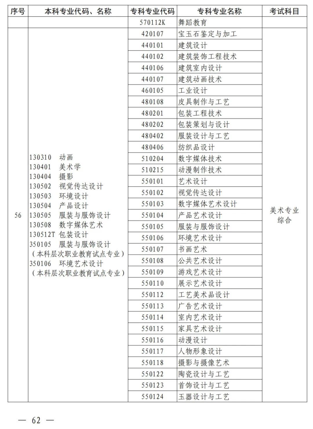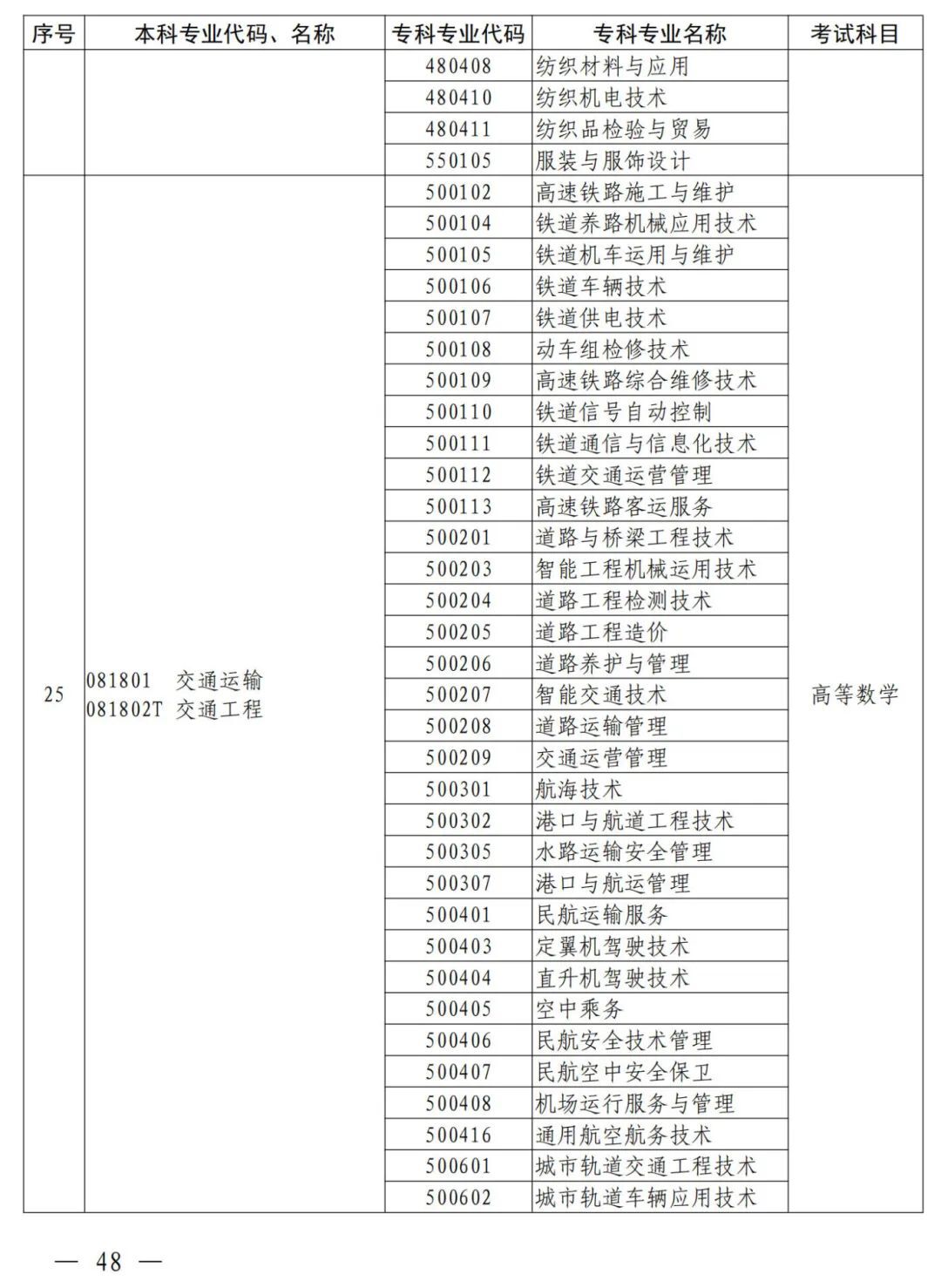 2025年河南省普通高校专升本考试招生专业对照及考试科目一览表